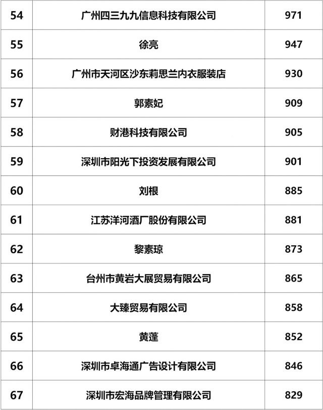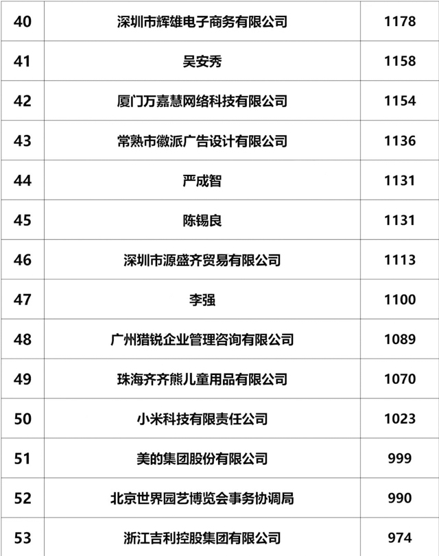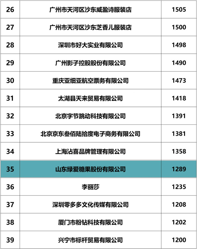 截止2018年6月30日,山東綠愛糖果股份有限公司,商標申請1289個,,全國排名第35位,山東省排名第1位!