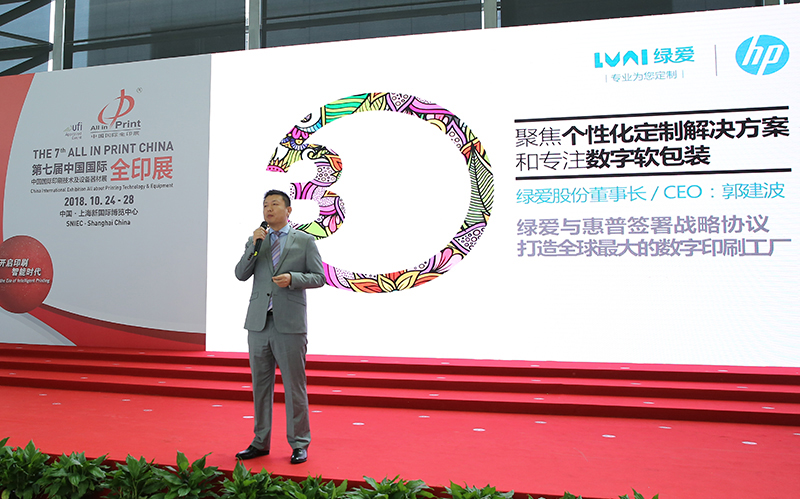 中國,上海2018年10月27日,綠愛受全球矚目,將在2019年計劃安裝HP Indigo 20000數字印刷機7臺,未來三年計劃裝機30臺。2016年引進中國大陸首臺HP Indigo 20000 數字印刷機,并充分應用到傳統產品中,成功轉型實現傳統產品的個性化應用。